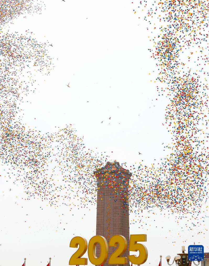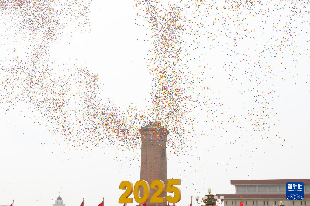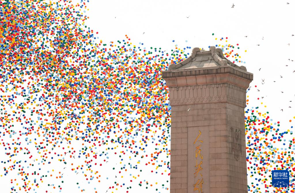 9月3日,紀(jì)念中國人民抗日戰(zhàn)爭暨世界反法西斯戰(zhàn)爭勝利80周年大會在北京隆重舉行。這是紀(jì)念大會現(xiàn)場放飛氣球。