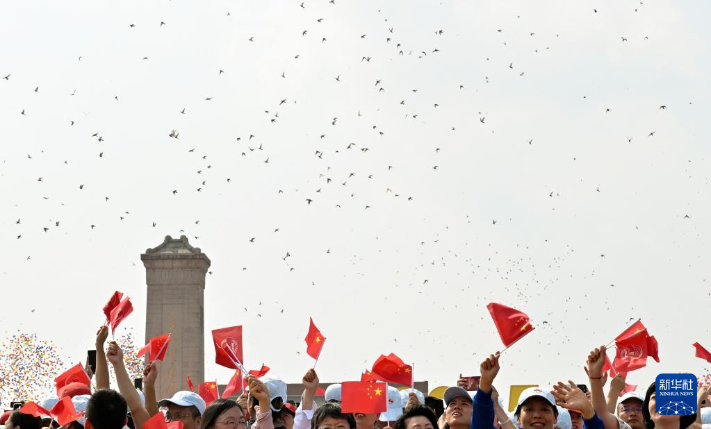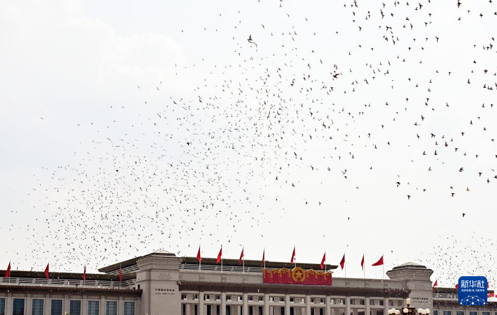 9月3日,紀(jì)念中國人民抗日戰(zhàn)爭暨世界反法西斯戰(zhàn)爭勝利80周年大會在北京隆重舉行。這是紀(jì)念大會現(xiàn)場放飛鴿子。