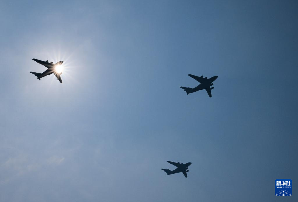 9月3日,紀(jì)念中國人民抗日戰(zhàn)爭暨世界反法西斯戰(zhàn)爭勝利80周年大會在北京隆重舉行。這是運輸機(jī)梯隊接受檢閱。