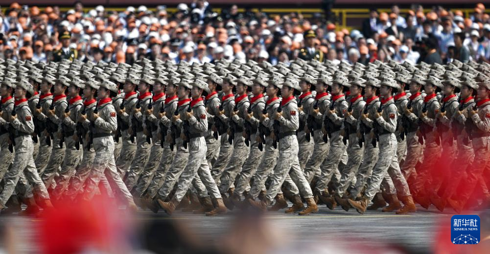 9月3日,紀(jì)念中國人民抗日戰(zhàn)爭暨世界反法西斯戰(zhàn)爭勝利80周年大會在北京隆重舉行。這是地面突擊方隊通過天安門廣場。
