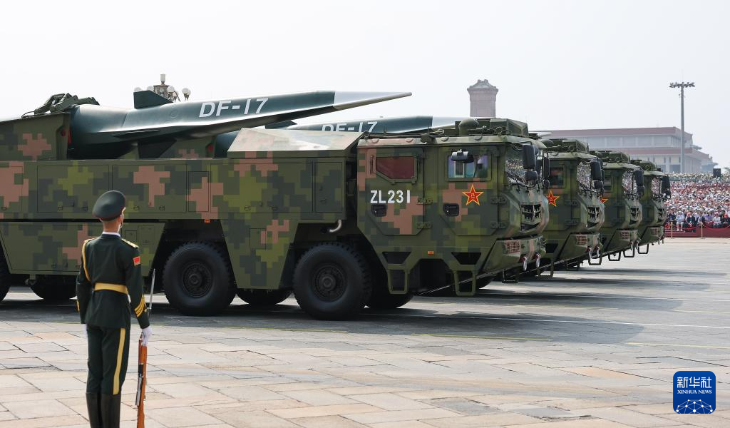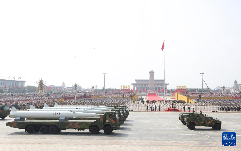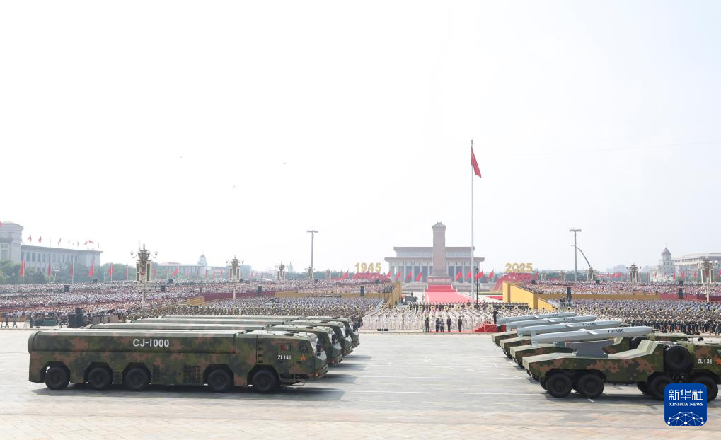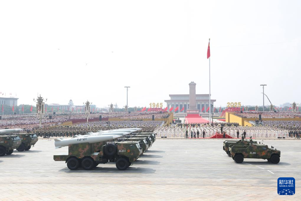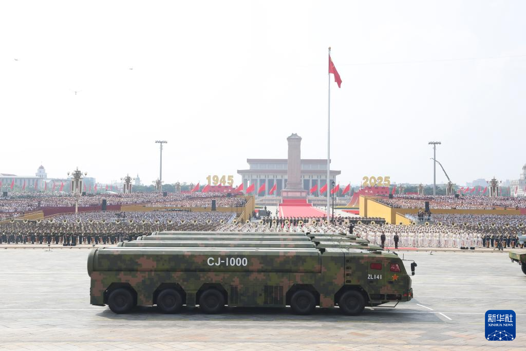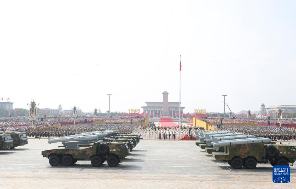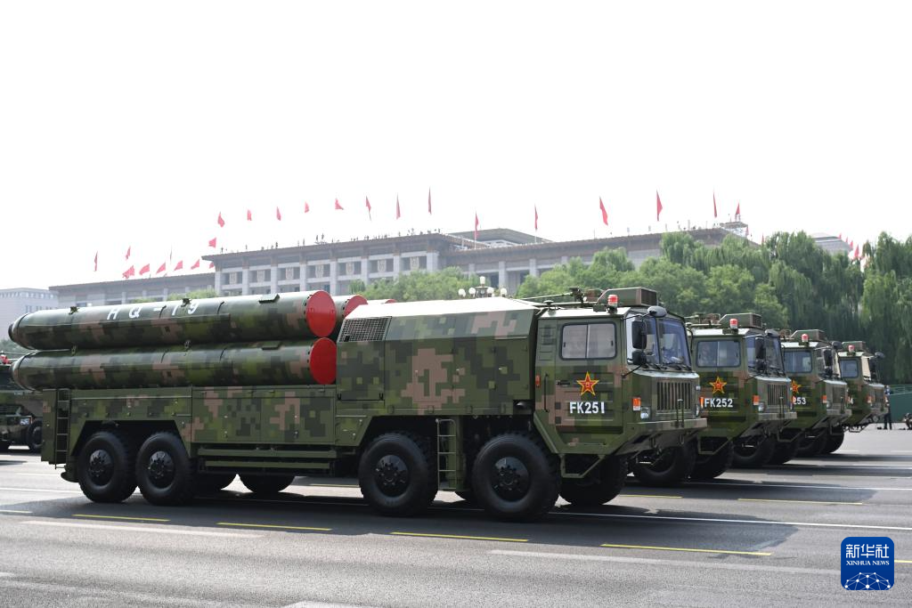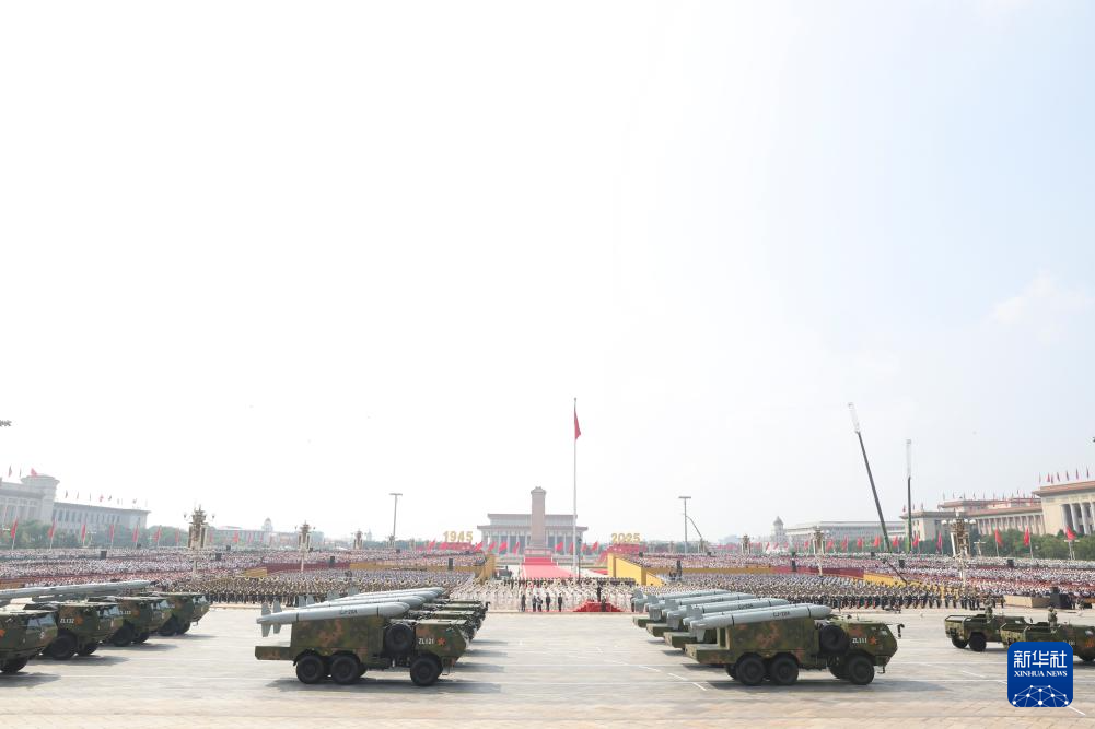 9月3日,紀(jì)念中國人民抗日戰(zhàn)爭暨世界反法西斯戰(zhàn)爭勝利80周年大會在北京隆重舉行。這是高超聲速導(dǎo)彈方隊接受檢閱。