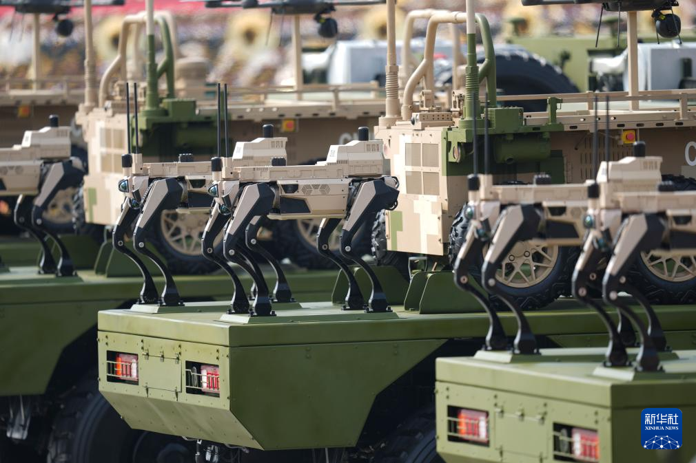 9月3日,紀(jì)念中國人民抗日戰(zhàn)爭暨世界反法西斯戰(zhàn)爭勝利80周年大會在北京隆重舉行。這是陸上無人作戰(zhàn)方隊接受檢閱。