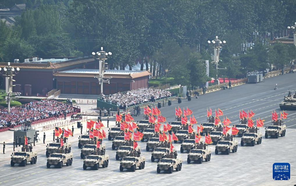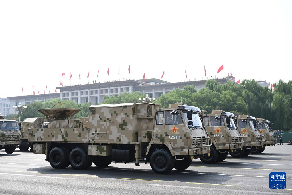 9月3日,紀(jì)念中國人民抗日戰(zhàn)爭暨世界反法西斯戰(zhàn)爭勝利80周年大會在北京隆重舉行。這是信息支援方隊接受檢閱。