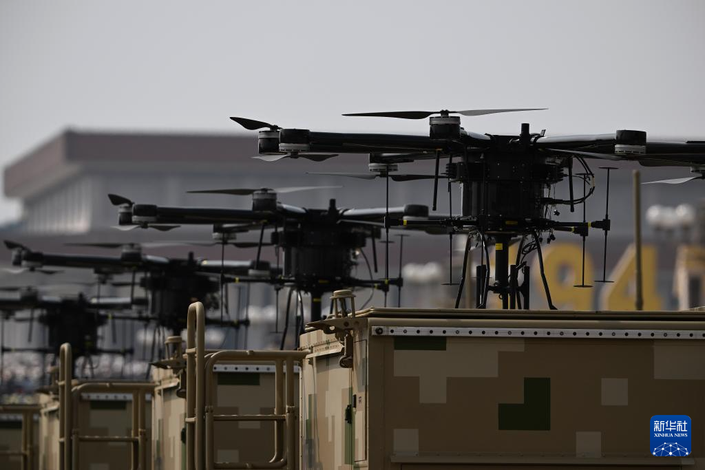 9月3日,紀(jì)念中國人民抗日戰(zhàn)爭暨世界反法西斯戰(zhàn)爭勝利80周年大會在北京隆重舉行。這是反無人機(jī)方隊接受檢閱。