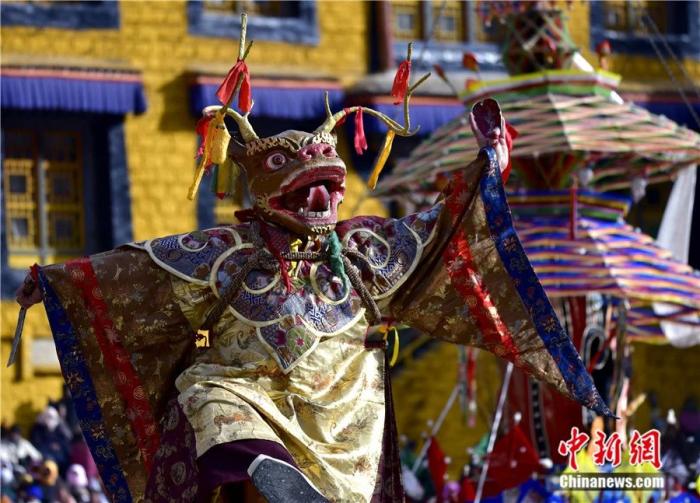 2025年2月27日是藏歷十二月二十九,西藏拉薩楚布寺舉行“羌姆”(跳神)活動(dòng),以驅(qū)邪送崇、祈福禳災(zāi),同時(shí)表達(dá)對(duì)藏歷木蛇新年的美好祈愿。中新社記者 李林 攝