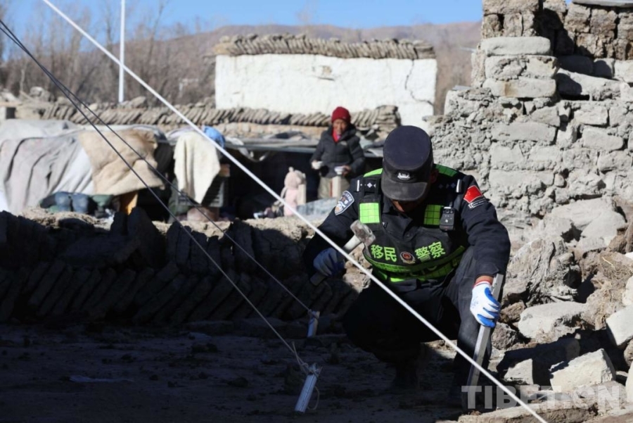 圖為武警官兵與公安民警在定日地震受災(zāi)最嚴(yán)重的村莊之一定日縣長所鄉(xiāng)古榮村為受災(zāi)群眾轉(zhuǎn)移財(cái)產(chǎn) (攝于2025年1月10日) 攝影:王淑