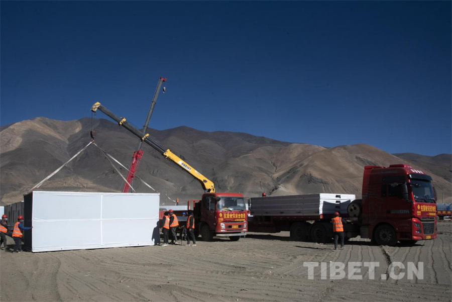 圖為地震發(fā)生第三日,在定日縣長所鄉(xiāng)森嘎村全國各地支援而來的活動(dòng)板房開始搭建,10分鐘一間的“中國速度”正在這里上演(攝于2025年1月9日) 攝影:趙振宇