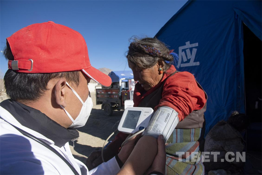 圖為在定日縣受災(zāi)群眾安置點(diǎn),作為第一支挺進(jìn)災(zāi)區(qū)的民間醫(yī)療力量,西藏阜康醫(yī)院的醫(yī)生正在為受災(zāi)群眾檢查身體(攝于2025年1月14日)攝影:趙振宇