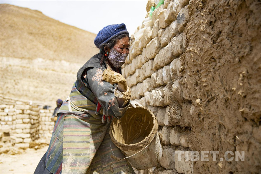 圖為定日縣曲洛鄉(xiāng)嘎白村的村民正在用中國鄉(xiāng)村發(fā)展基金會(huì)的10萬元資金修建畜圈。修建所需的材料都來自于受災(zāi)村民自己坍塌的老房子的土磚,全村31戶村民每戶派出一名人員參與畜圈建設(shè),每天會(huì)獲得150元的務(wù)工報(bào)酬(攝于2025年2月27日) 攝影:趙振宇