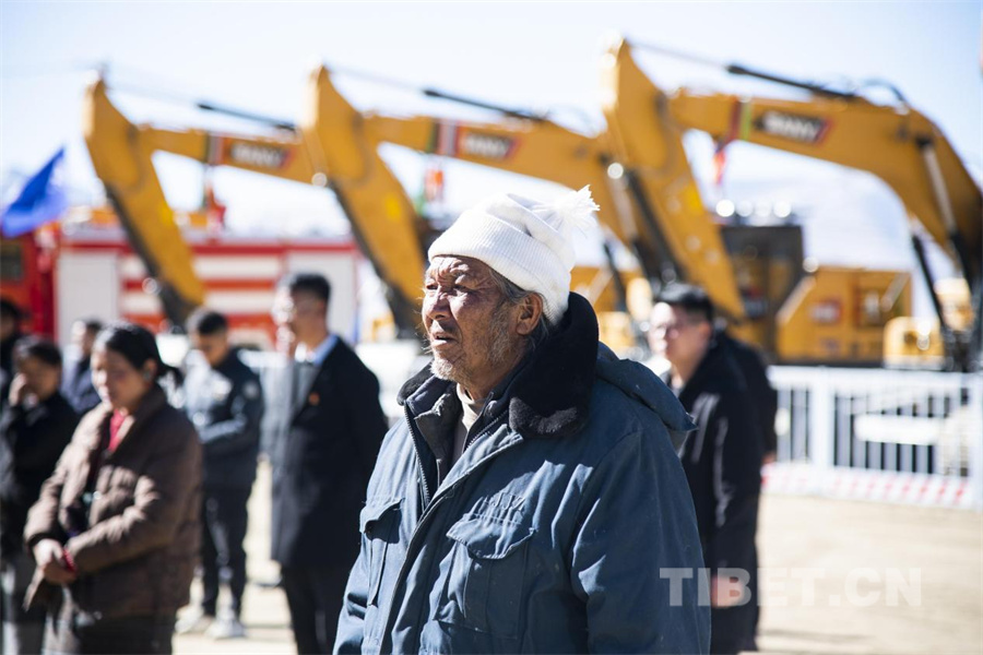 圖為定日縣6.8級地震8個(gè)整村推進(jìn)村莊災(zāi)后恢復(fù)重建項(xiàng)目啟動(dòng)儀式在定日縣長所鄉(xiāng)古榮村舉行,標(biāo)志著災(zāi)后恢復(fù)重建工作啟動(dòng)。(攝于2025年3月3日)攝影:趙振宇