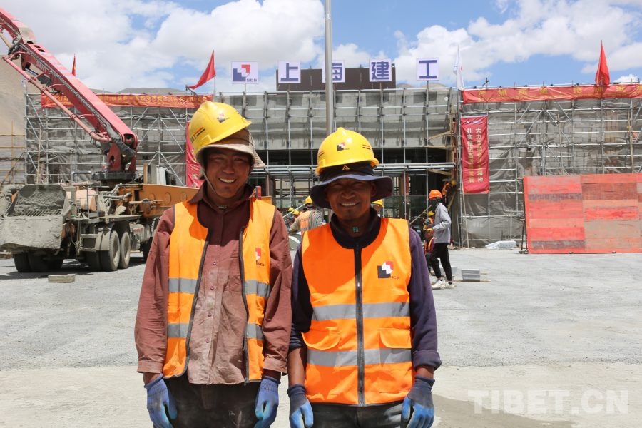 圖為森嘎村災(zāi)后重建現(xiàn)場,森嘎村村民米瑪(左)和頓珠(右)參與以工代賑項(xiàng)目,用自己的雙手建設(shè)家園(攝于2025年6月15日)攝影:旦曲