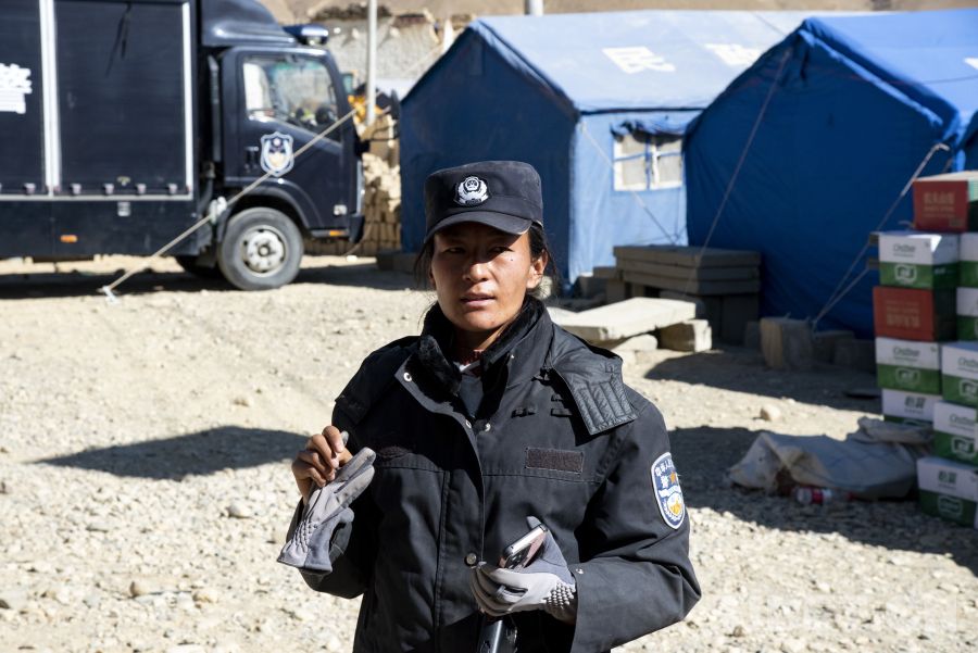 在嘎白村,有一位年齡最小的黨員名叫阿旺德金,去年剛剛大學(xué)畢業(yè)的她選擇到嘎白村成為一名科技振興專干。相較于塔杰書記、頓珠巴姆隊長以及次仁玉珍來說,她的工作經(jīng)驗尚不豐富,在大災(zāi)大難面前雖還不能獨當(dāng)一面,但在自己的崗位上兢兢業(yè)業(yè)。13日,嘎白村的村民正在從安置帳篷搬往活動板房居住,阿旺德金在一戶又一戶的帳篷內(nèi)幫助受災(zāi)群眾收拾個人物品。