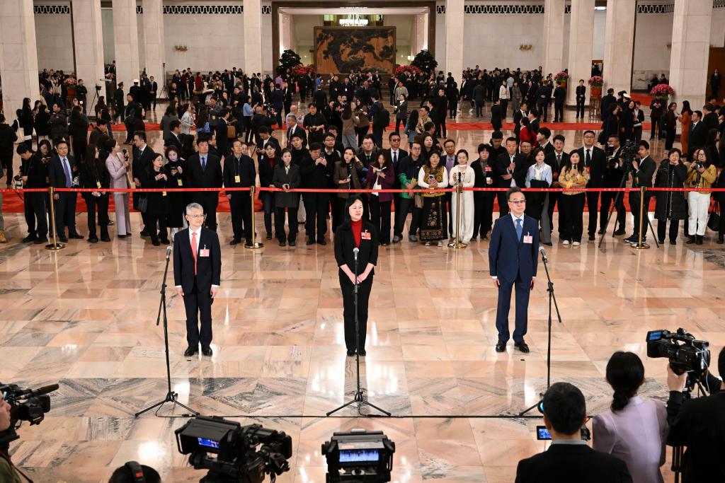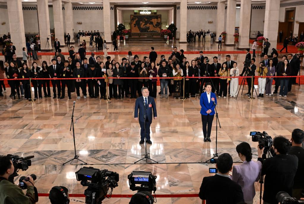 3月11日,全國政協(xié)十四屆四次會議第三場“委員通道”集體采訪活動在北京人民大會堂舉行。新華社記者 曹祎銘 攝