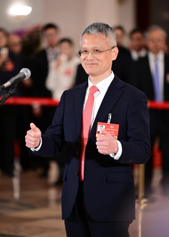 3月11日,全國政協(xié)十四屆四次會議第三場“委員通道”集體采訪活動在北京人民大會堂舉行。這是全國政協(xié)委員徐坤接受媒體采訪。新華社記者 曹祎銘 攝