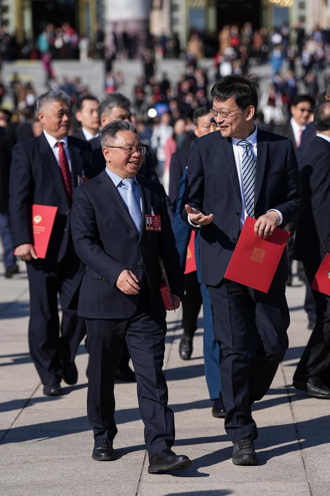 3月11日,全國政協(xié)十四屆四次會(huì)議在北京人民大會(huì)堂舉行閉幕會(huì)。這是閉幕會(huì)后,委員們走出人民大會(huì)堂。新華社記者 金良快 攝
