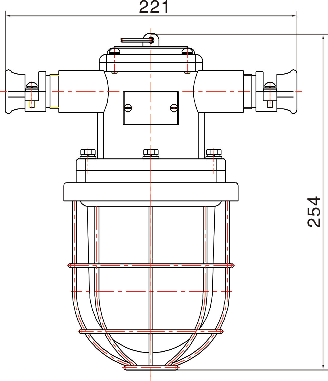 | 13W熒光燈由上蓋、上殼體、下殼體、防爆透明玻璃罩、金屬保護(hù)網(wǎng)等組成,上蓋與上殼體用M4螺釘連接,下殼體用M6螺釘與上殼體相連。防爆透明玻璃罩、護(hù)罩用M4螺釘固定在下殼體上。上殼體外有M4外接地螺釘、銘牌等,上殼體內(nèi)有接線板、M4內(nèi)接地螺釘、直口式壓接燈頭。下殼內(nèi)有密封墊、防爆透明玻璃罩及金屬保護(hù)網(wǎng),燈頭與電源采用直口式壓接方式。上蓋、上殼體、下殼體、防爆透明玻璃罩之間均有符合規(guī)定的隔爆接合面隔爆。 |